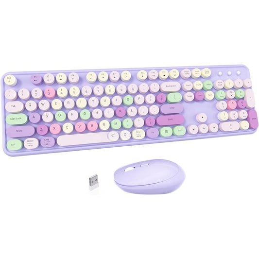 Colorful Computer Keyboard Combos, Typewriter Flexible Office Full-Sized Keyboard, 2.4Ghz Dropout-Free Connection and Optical (Purple-Colorful)